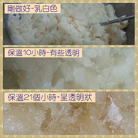 皂糊包好後將鍋子放入電鍋中,外鍋放一杯水,跳3次後,開始保溫,以減緩皂糊溫度下降的速度,使皂糊充分皂化,並觀察其變化。保溫21小時後取出,約1週後再用試紙測試ph值為10以下再溶解使用。